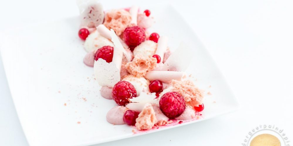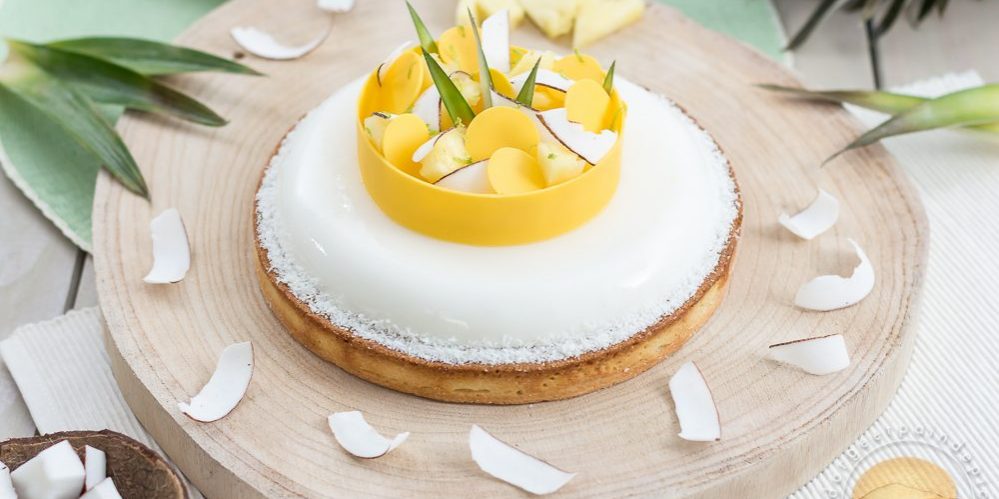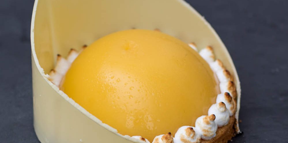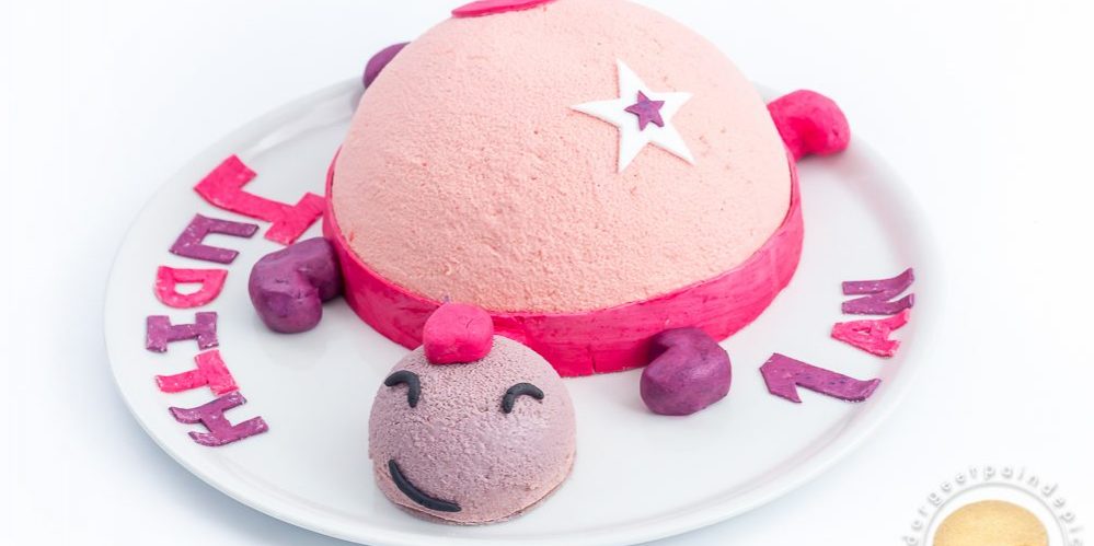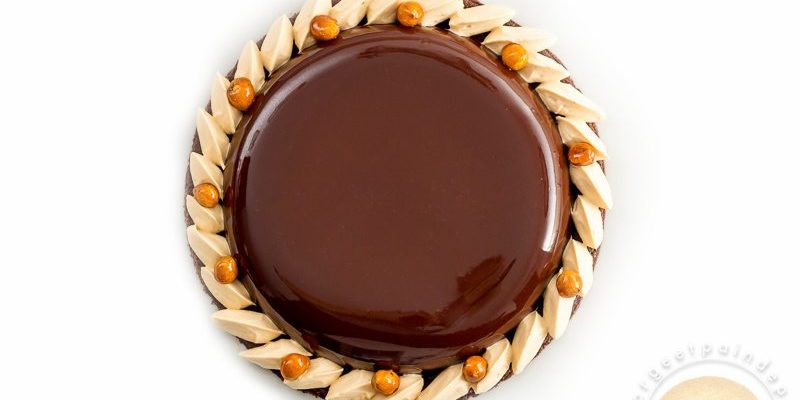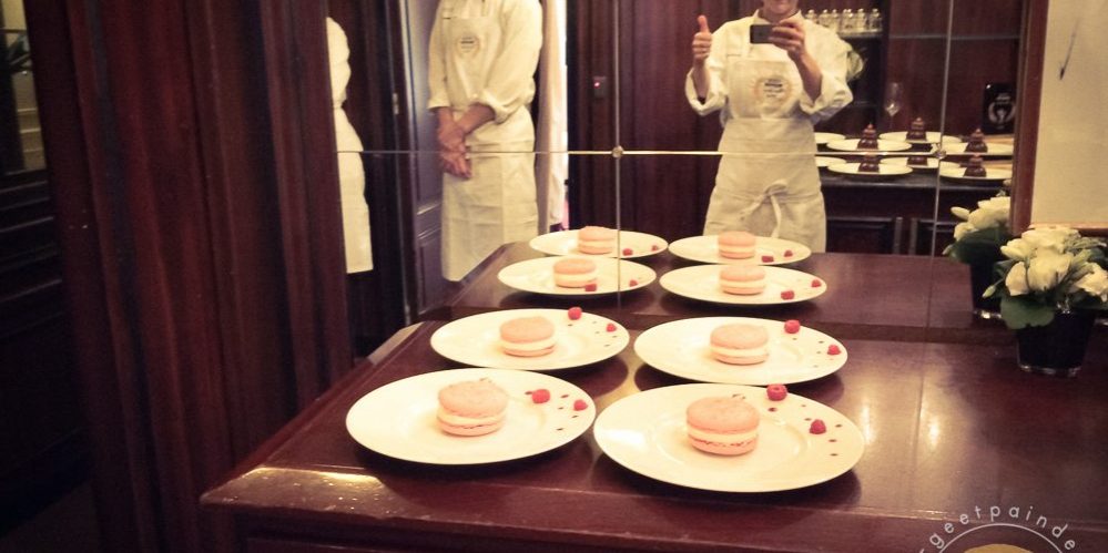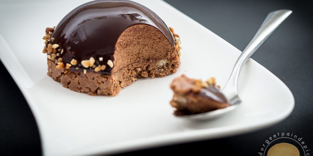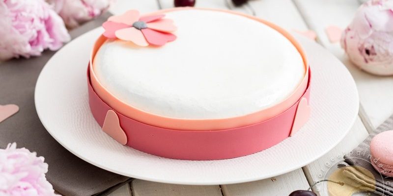 Un bel entremets pour fêter les mamans : macaron aux biscuits roses, compotée de cerises et ganache montée à l’amande amère