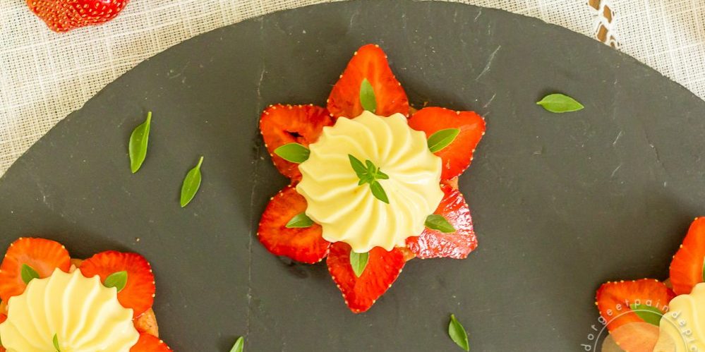 Comme un chef, mon dessert à l’assiette : lait d’amande, framboise et fleurs d’hibiscus